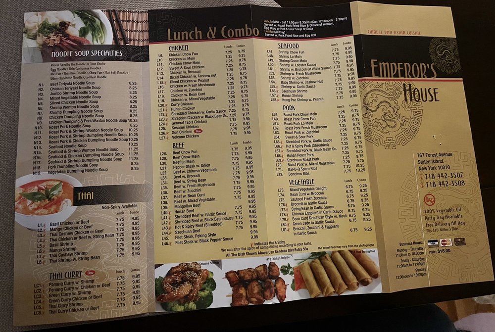 Emperor House, a Chinese restaurant located at 767 Forest Ave, Staten Island, NY, offers a delightful dining experience with its diverse menu and great customer service. Customers rave about the fresh and flavorful dishes, such as the Singapore Mei Fun and shrimp dumplings. Many reviewers appreciate the generous portions, quick delivery, and friendly staff. The menu features a variety of vegetarian options, making it a perfect choice for those with dietary preferences. With options for delivery, takeout, and reservations, Emperor House caters to a wide range of preferences. Whether you're craving traditional Chinese favorites or exploring new dishes, Emperor House is a must-try for a satisfying and enjoyable dining experience.